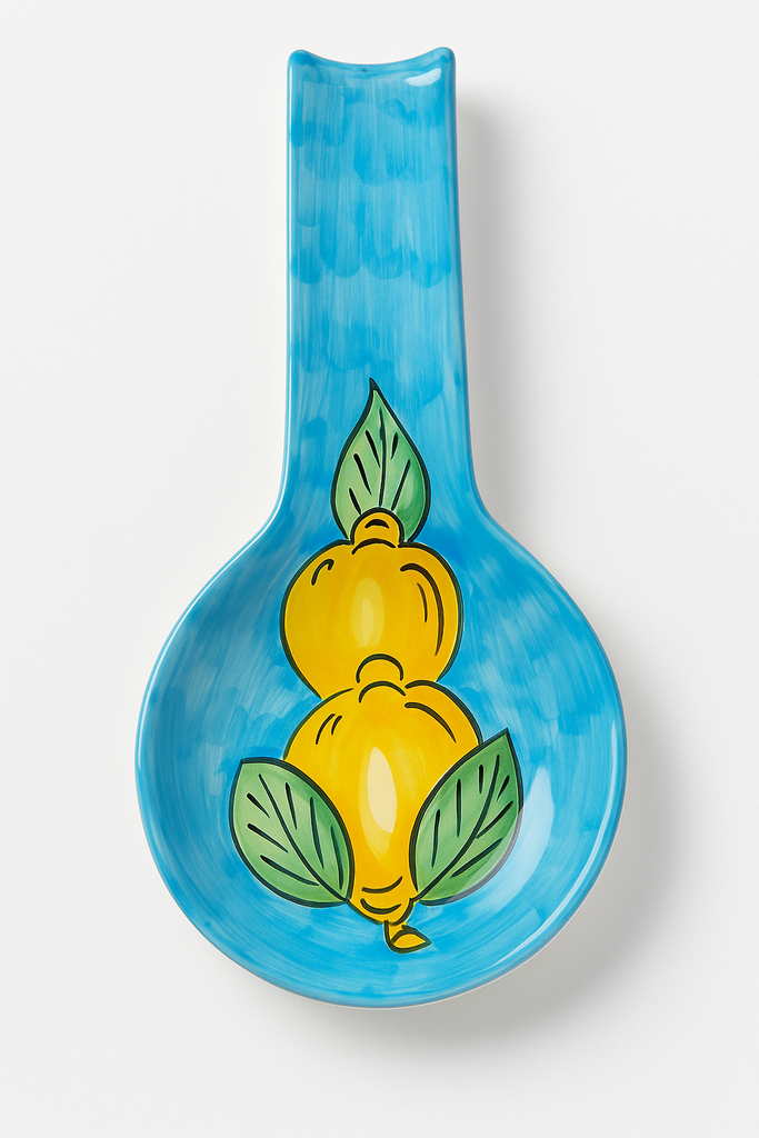 Hand-painted in Sorrento, this ceramic spoon rest brings Mediterranean flair to your kitchen. Featuring the iconic lemon motif on a brilliant blue background, it combines practicality with authentic Italian artistry.