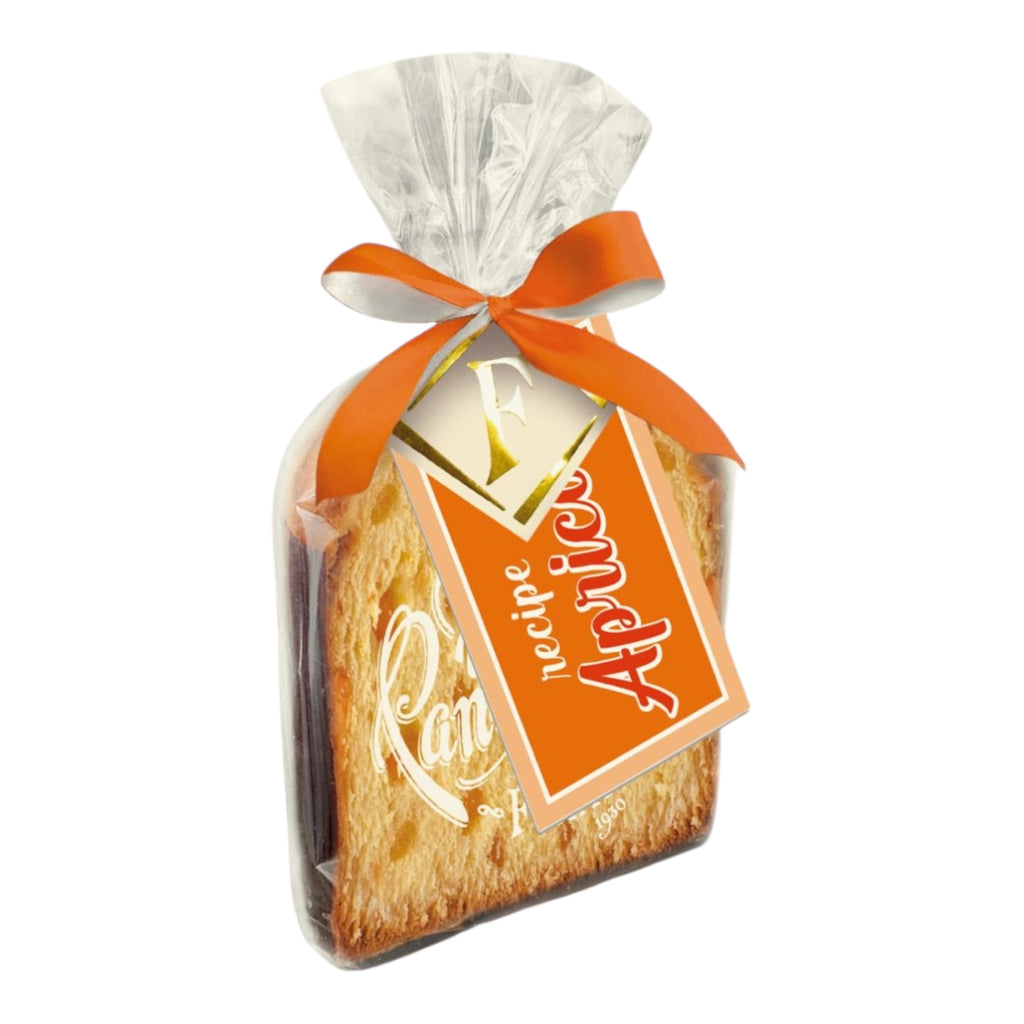 Each cake is naturally leavened for over 48 hours, giving it a soft, fluffy texture and rich, buttery aroma. The sweetness of the apricots perfectly complements the golden dough, creating a refined and elegant dessert that embodies Italian craftsmanship.